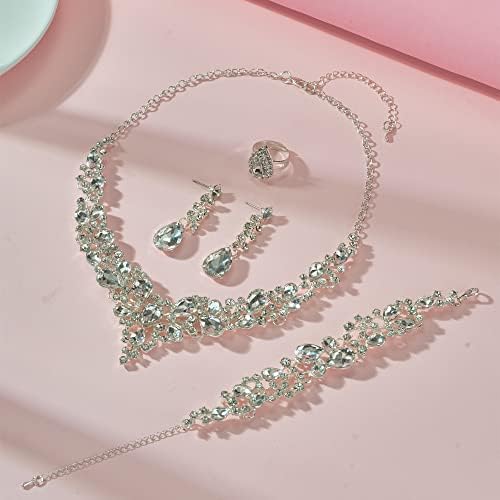 Sponsored Ad - Crystal Bridal Wedding Jewelry Sets for Women Rhinestone Teardrop Crystal Statement Choker Necklace Drop Earrings Link Bracelets Rings Teardrop Jewelry Set for Brides Bridesmaids