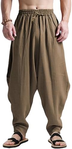 Mens Harem Pants Loose Fit Elastic Waist Drawstring Aladdin Hippie Trousers