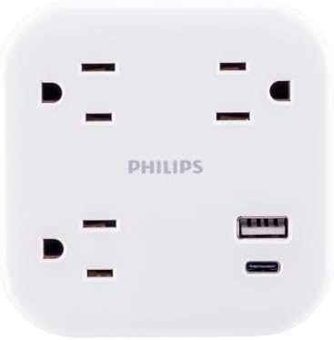 EZFit 3-Outlet Surge Outlet Extender with USB, 1 USB-A, 1 USB-C, Adapter Spaced, Charging Station, 12W, 980 Joules, White - SPP9393W/37