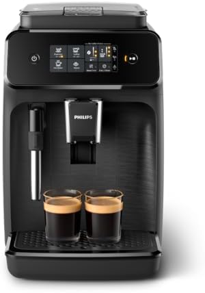 1200 Series Fully Automatic Espresso Machine, Classic Milk Frother, 2 Coffee Varieties, Intuitive Touch Display, 100% Ceramic Grinder, AquaClean Filter, Aroma Seal, Black (EP1220/04)