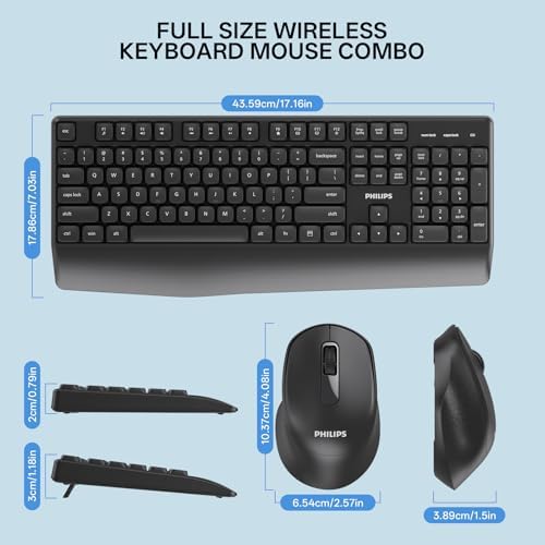 Wireless Keyboard and Mouse Combo-Ergonomic Keyboard and Mouse Wireless Combo with Silent Design,Plug n' Play,Sleep Mode and 2.4GHz Keyboard for Mac, Windows, Laptop-Black