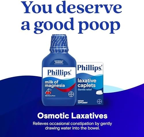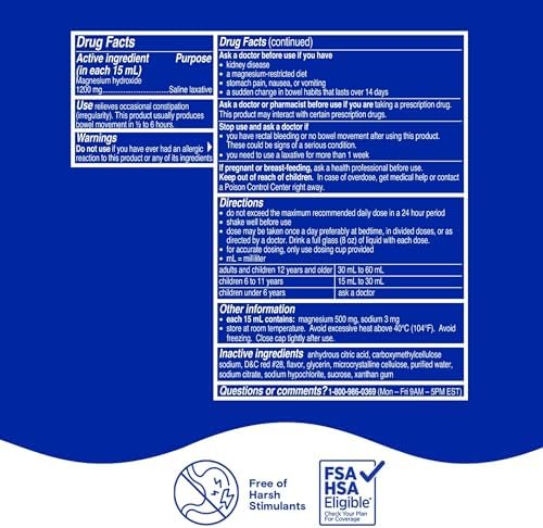 Phillips’ Milk of Magnesia Liquid Laxative, Wild Cherry Flavor, Stimulant Free, Cramp Free Relief of Occasional Constipation*, Effective in 30 minutes - 6 hours, #1 Milk of Magnesia Brand, 26 oz