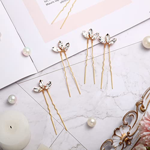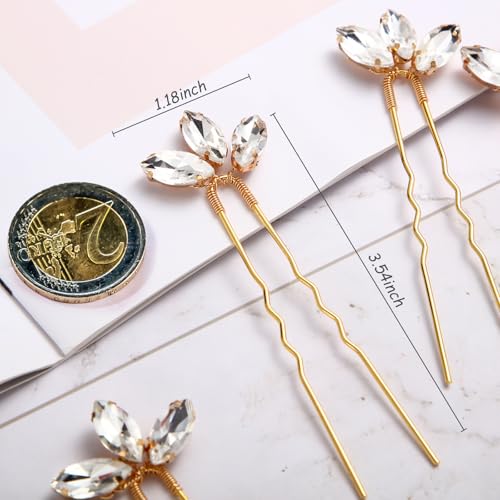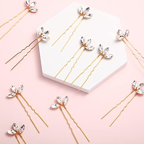 10 Pieces Crystal Wedding Hair Pins Rhinestone Bridal Hair Clips Pins for Bride Bridesmaids Women (Gold)