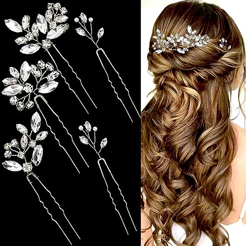 5 Pieces Bride Hair Pins Rhinestone Bridal Hair Piece for Women Crystal Hair Accessories for Bride Bridesmaids Flower Girls(Silver)
