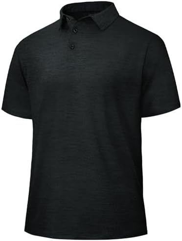 Polo Shirts for Men - Quick Dry Moisture Wicking Black Short Sleeve Performance Golf T Shirts for Casual Work Athletic