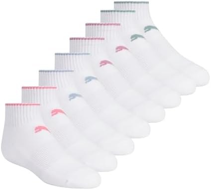 girls 8-pack Quarter Crew Socks, Everyday Wear for Kids, Extra Cushion & Arch Support
