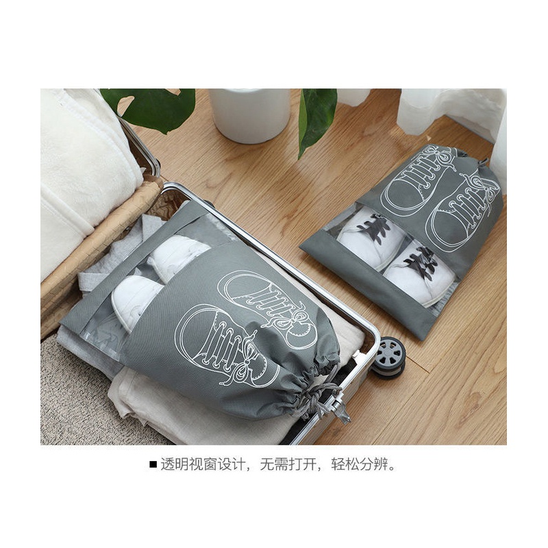 [Ready Stock][Gift with purchase] Non-woven Shoes Bag Portable Tote Drawstring Bag For Shoes Waterproof Dustproof Travel Bag