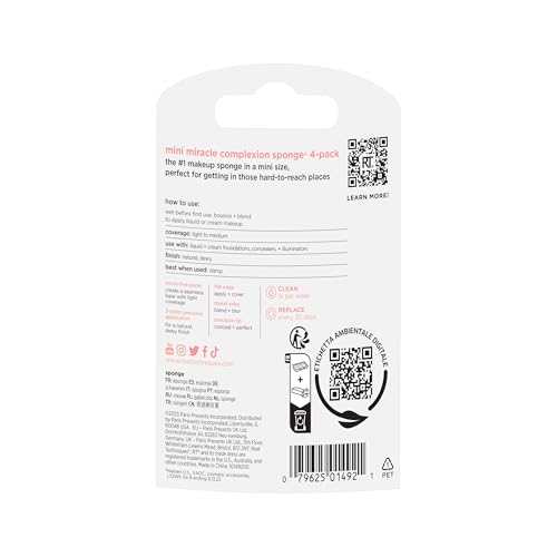 Sponsored Ad - Mini Miracle Complexion Sponge 4 Pack, Small Makeup Blending Sponges, For Foundation & Concealer, Mini Size for Under Eyes & Touch-Ups, Travel Friendly, Natural Makeup, Latex-Free
