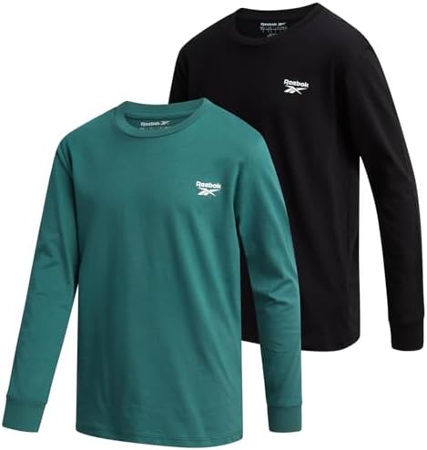 Boys' Long Sleeve Shirt - 2 Pack Basic Cotton Long Sleeve T-Shirt - Crewneck Tee for Boys (8-14)