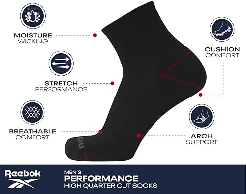 Men’s Athletic Socks – Cushion High Quarter Cut Socks (6 Pack)