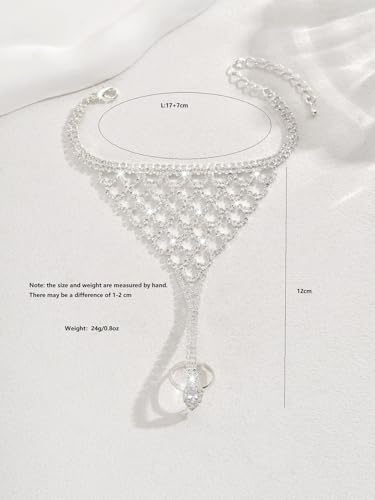 Rhinestone Ring Bracelet for Women Gold Silver Crystal Hand Chain Finger Ring Sparkling Long Tassel Chain Bracelet Prom Rings Bracelet Brides Bridesmaids Wedding Party Dance Banquet Dress Jewelry