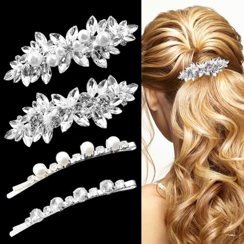 Sponsored Ad - 4 Pieces Rhinestone Bridal Hair Clip, Pearls Wedding Hair Pins Crystal Hair Clips Diamond Hair Clips, Rhinestone Jewelry Barrette Vintage Hair Accessories Pearl Hair Clips Hair Accessor