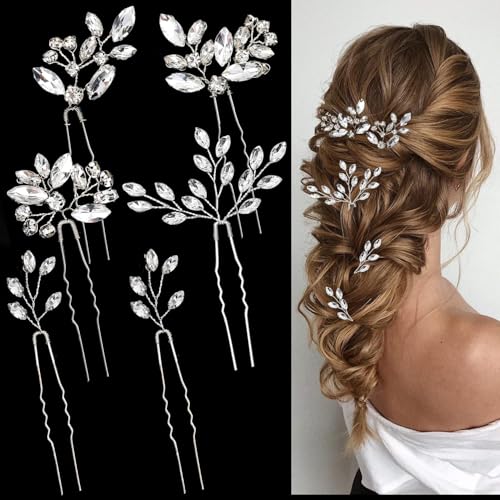 6 Pieces Bride Hair Pins Rhinestones Hair Accessories for Women Crystal Hair Piece for Wedding Bride Women Girls Bridesmaids