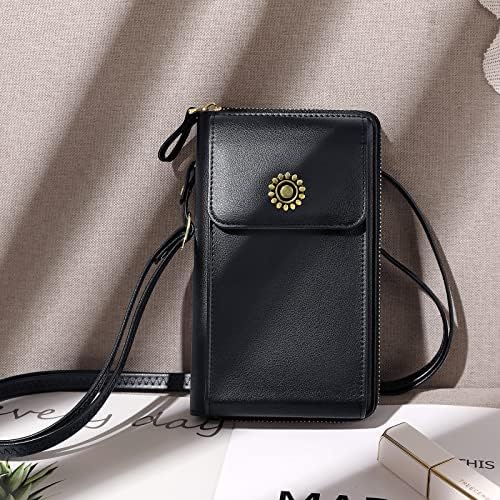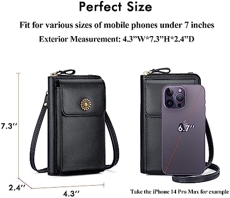 Sponsored Ad - Crossbody Purse Cell Phone Bag for Women RFID Blocking Cell phone Wallet Mini Shoulder Bag (Black Purse)