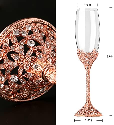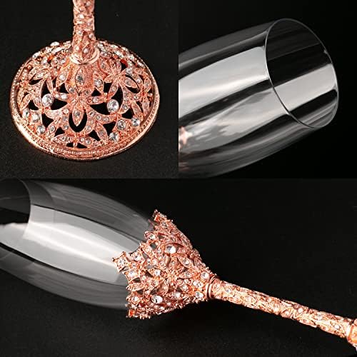 Sponsored Ad - Champagne Flutes - Crystal Glass Metal Base With Crystal Stones, Set of 2 Toasting Flute Pair, Wedding Anniversary Party Birthday Banquets and Gifts for Bride and Groom (Rose Gold)