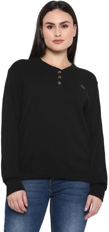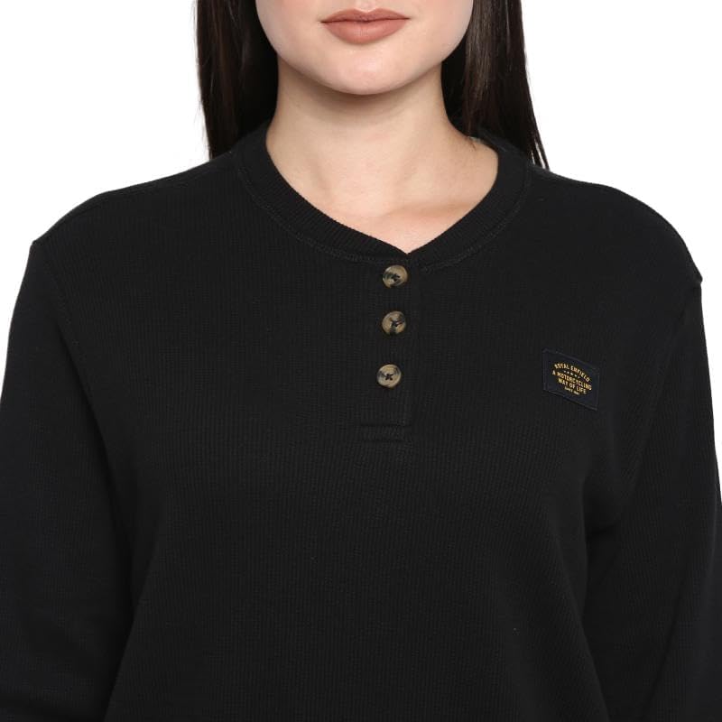 Branded Waffle Henley Women's T-Shirt 100% Cotton Long Sleeve Tee with Button Round Neck Summer Shirt for Women