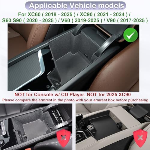 Center Console Organizer Tray Compatible with Volvo XC60 (2018-2025) / XC90 (2021-2024) / S90 S60 (2020-2025) V60 V90 Accessories, Insert Armrest Tray Middle Console Organizer