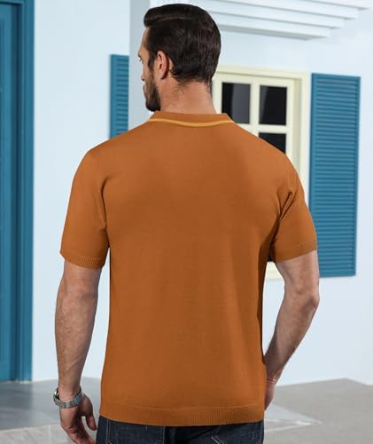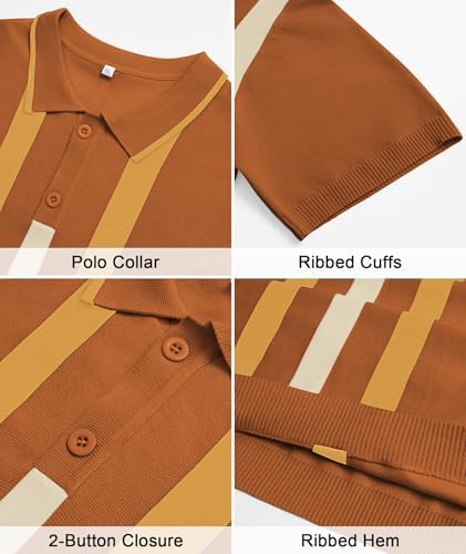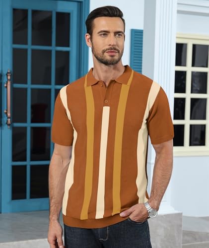 Sponsored Ad - Mens Casual Polo Shirts Knit Short Sleeve Vintage Striped Button T-Shirt Slim Fit Golf Vacation Shirt