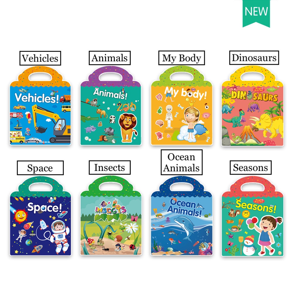 [SG] Reusable Educational Sticker Books (16-Themes) - Children's Activity Sticker Book