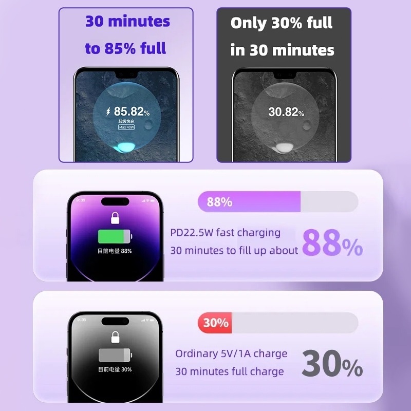 Value For Money:average Best Feature(s):compact and light weight Product Quality:stated 20,000mah, is definitely lesser It used about 20% power capacity to charge about 40% of iPhone 13pro which is about the same as my existing 10,000mah powerbank. Speed of charging 40% of phone battery is close to 1 hour. Charging up the powerbank takes about 1hr for every 10% using the in-built charging cable.