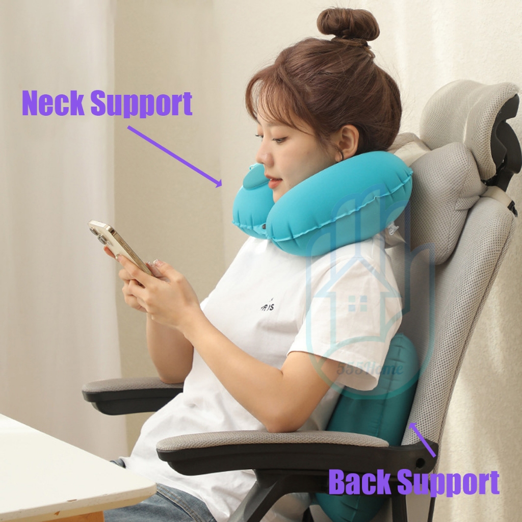 Material Quality:good Colour:nice Just collect in good condition, Ju-shape lnfratable travel pillow.brought two pieces Gray and blue..is good for travel long hours.. like it and very light weight too
