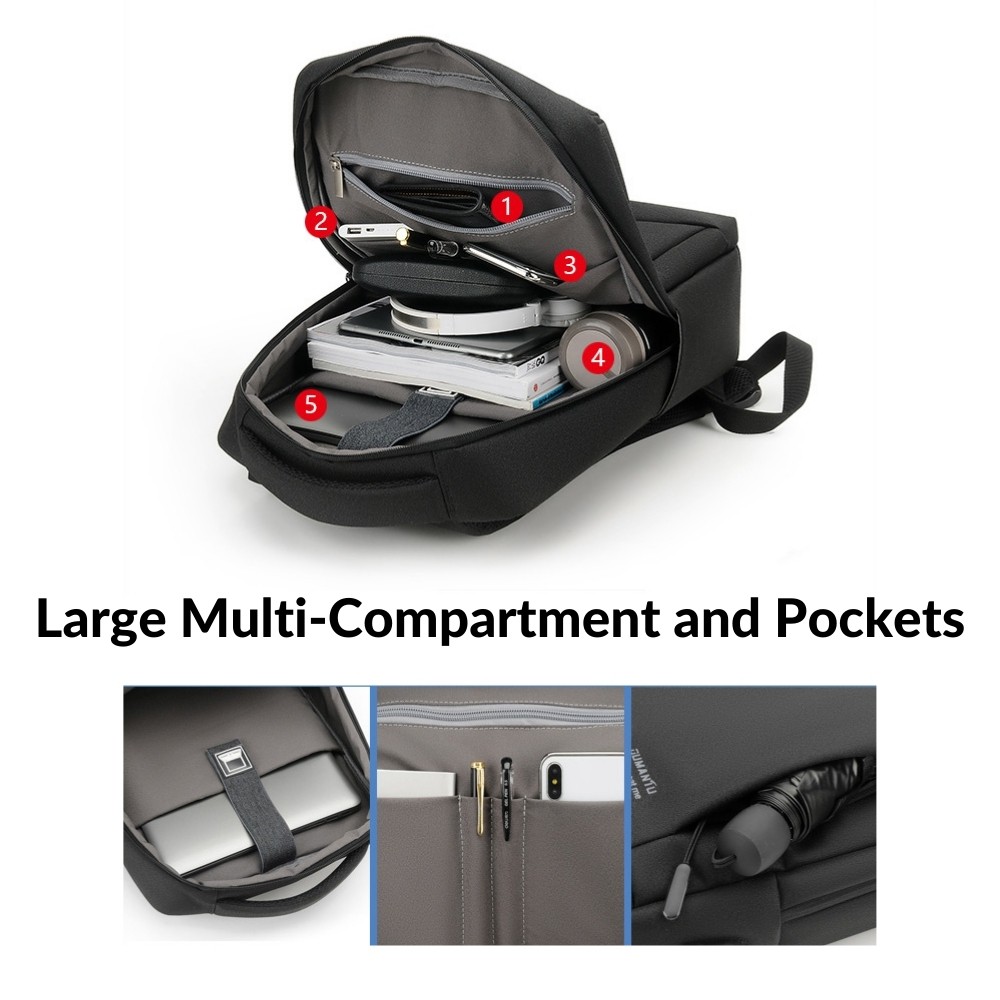 【SG】Multi-Functional Men Business Laptop Backpack Travel Laptop Bag Waterproof USB Charging Port