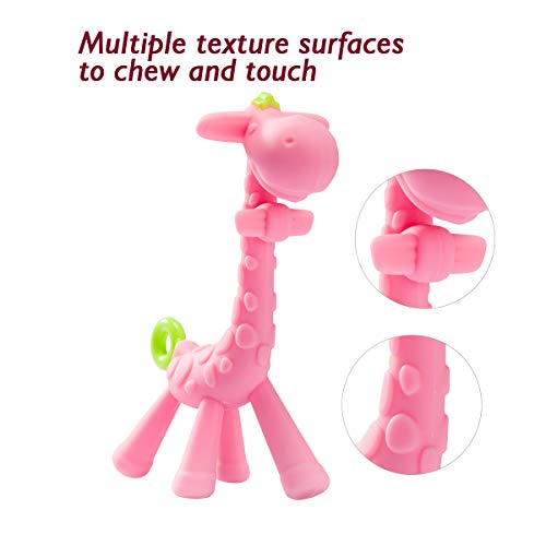 SHARE&CARE BPA Free Silicone Giraffe Baby Teether Toy with Storage Case, for 3 Months Above Infant Sore Gums Pain Relief and Baby Shower, Baby Teething Toys (Pink)