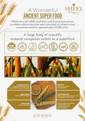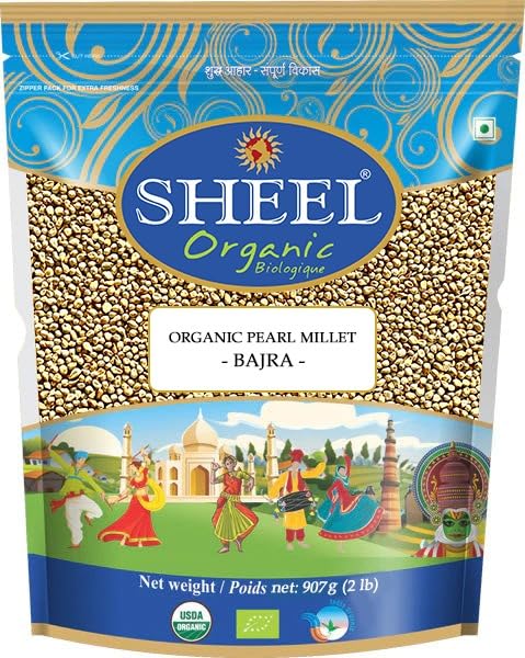 Sheel Organic Pearl Millet/Bajra/Raw (Pennisetum Glaucum) Whole Ancient Grain Seeds - 2 lbs, 32oz (907g) ~ USDA Organic | All Natural | Gluten Friendly | NON-GMO | Vegan | Indian Origin