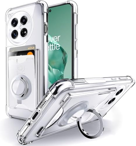 Sponsored Ad - for OnePlus 12 Case, 1+12 Case, Minimalist Wallet Case with Card Holder & Ring Kickstand/Stand, [Drop Protection] Slim Protective Cover - Clear