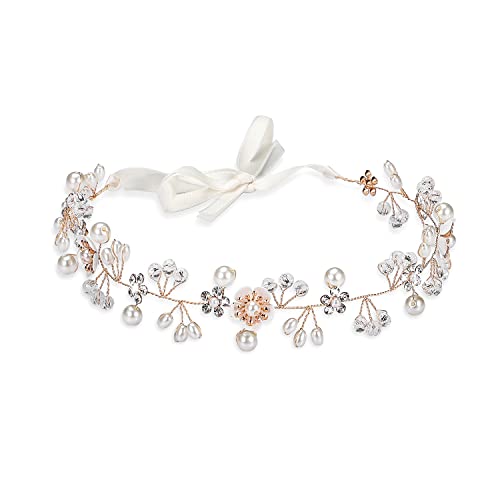 Sightor Flower Girl Headpiece, Wedding Headband for Women Crystal Pearl Hair Accessories for Birthday, Party, First Communion,Wedding Bride Bridesmaids Hair Jewelry