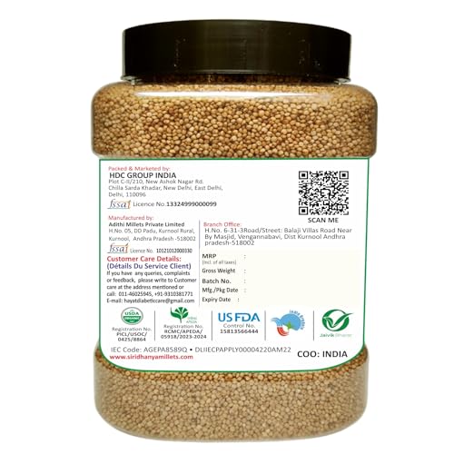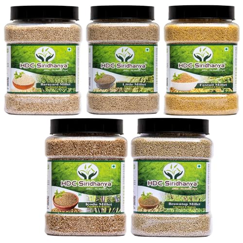 Siridhanya Unpolished and Organic millets (Little, Foxtail, Kodo, Brown_top & Barnyard millet) Each millet 900gm pack of 5 in Jar