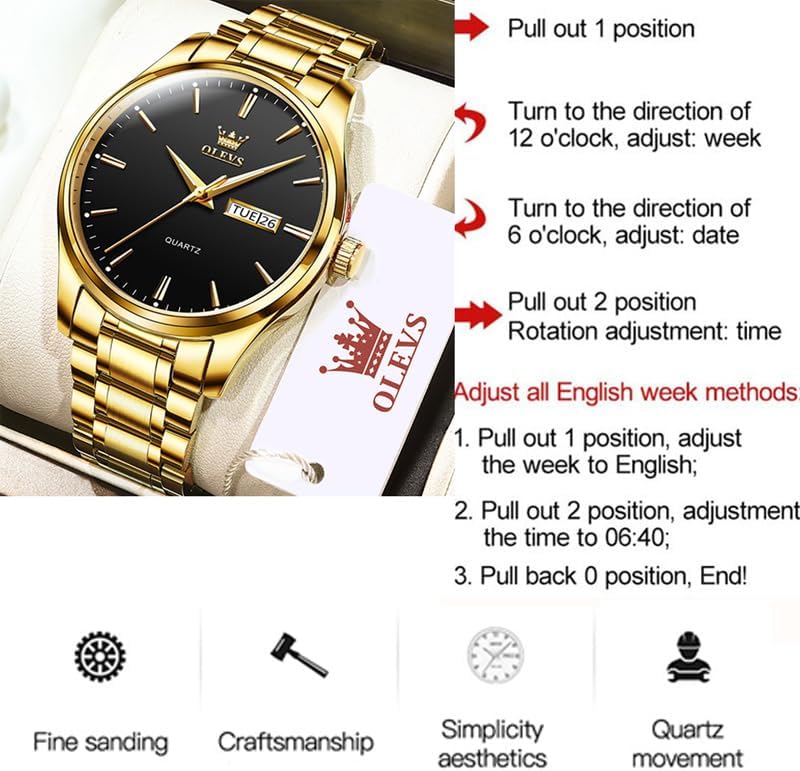 Mens Gold Watches Waterproof Stainless Steel Lightweight Watch with Date Classic Luxury Dress Watch for Men Gold White Blue Green Dial