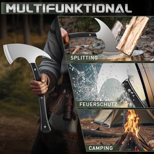 Full Tang Survival Camping Axe with Wood Ergonomic Handle and Nylon Sheath Sheath – High Carbon Stainless Steel, Multi-Tool for Outdoor, Hunting, Emergency (Big)