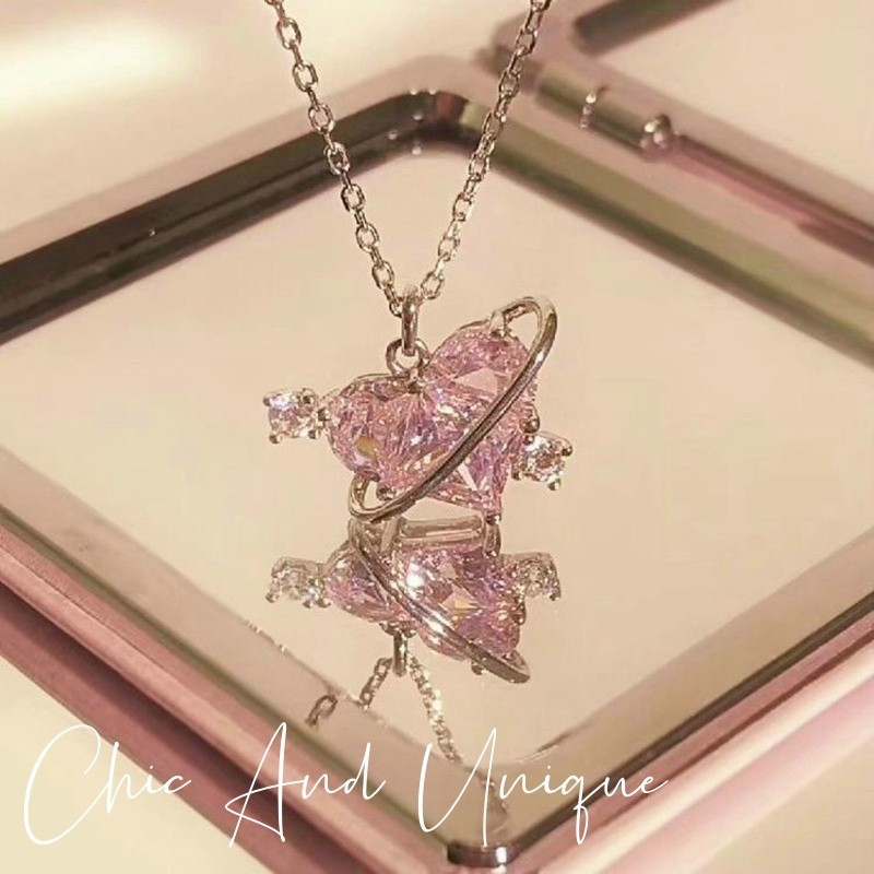 Sweetheart Pendant Necklace With Pink Diamond Butterfly Bow Necklace Chic And Unique Pendant Necklace