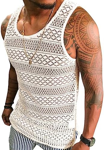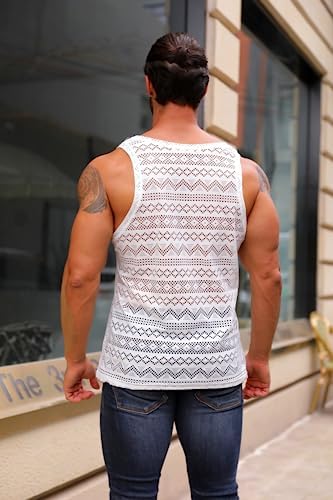Mens See Through Vest Crewneck Sleeveless Tank Tops Muscle Sexy Mesh Shirts