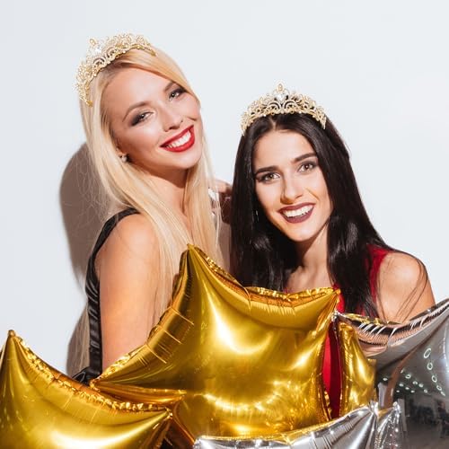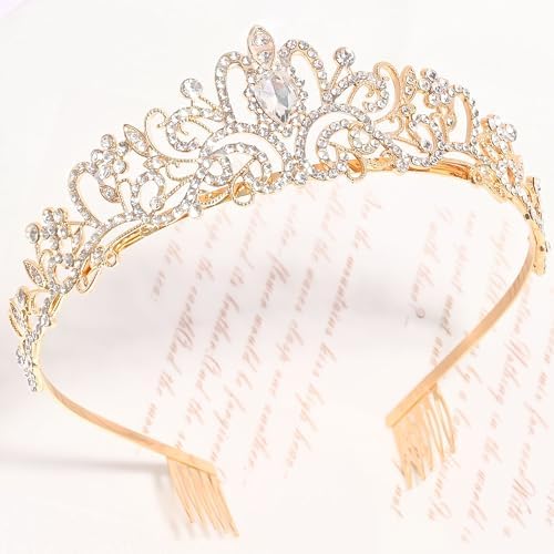 TAROSE Crowns for Women and Girls, Queen Crystal Gold Silver Tiaras with White Rhinestone and Combs, Goddess Crown for Wedding Bride Birthday Princess Bridal Shower Hair Accessories for Women