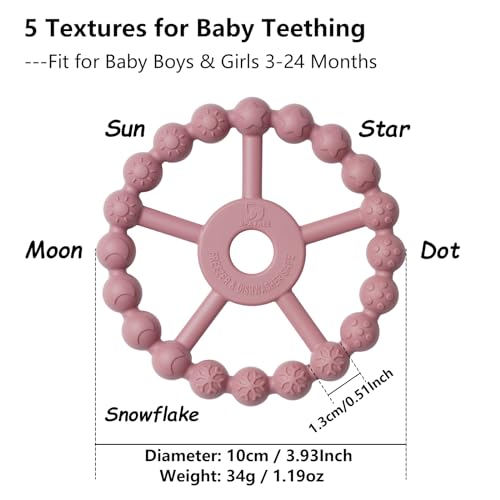 3 Pack Ring Teether Baby Infant Toys, Baby Essentials, Silicone Teething Ring Toys for Babies 6 Months, Seposeve Toddler Teethers 6-12 Months 12-24 Months, Infant Teething Relief, Purple Pink White