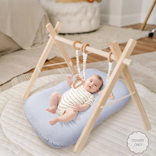 Termichy Baby Lounger Covers Muslin: Soft and Breathable Slipcover for Snuggle Me Lounger - Machine Washable & Zipper-Free for Safe Daily Use - Navy & Blue for Boys