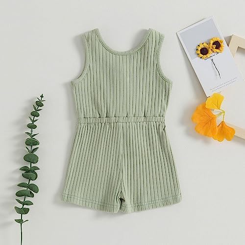 Toddler Baby Girl Summer Romper Ribbed Clothes Infant Baby Jumpsuit Button Down Rompers Clothing 0-5T
