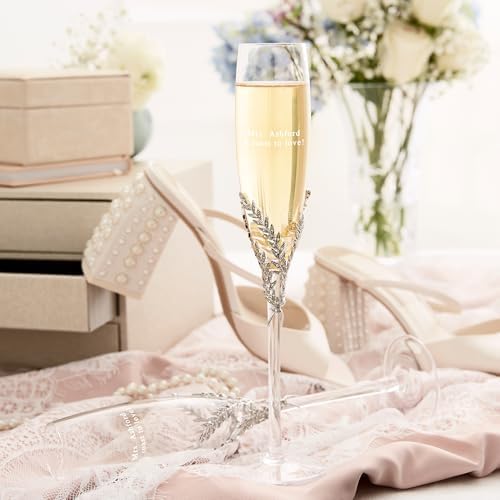 Sponsored Ad - THINGS REMEMBERED Engraved Personalized Athena Wedding Engagement Pavé Champagne Flutes, Set of 2, Gift Box Included (Free Customization)