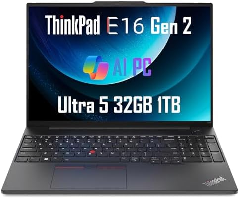 Lenovo ThinkPad E16 Gen 2 Business Laptop (16" FHD+ Anti-Glare, Intel Core Ultra 5 125U (> i7-1355U), 32GB DDR5 RAM, 1TB SSD) Fingerprint, Backlit, Webcam, Ethernet, Win 11 Pro, 2025 AI PC, Black