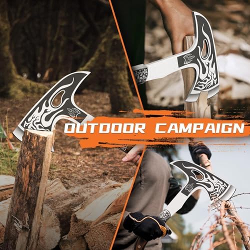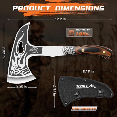 TIVOLI 12.2" Camping Axe, Flame - Patterned Survival Hatchet with Nylon Sheath, High Carbon Steel Blade & Comfortable Ergonomic Wood Grip, Outdoor Bushcraft Axe for Camping, Hiking, Chopping, Hunting