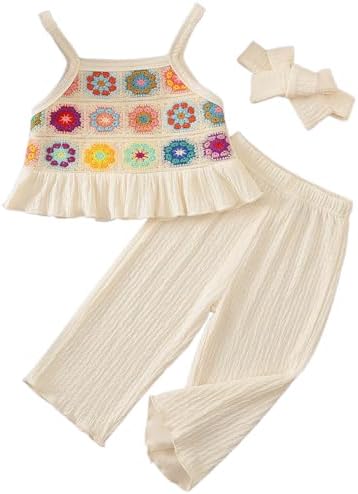 Sponsored Ad - Toddler Baby Girl Summer Clothes Outfits Crocheted Ruffle Camisole Pants Kids Clothing Set