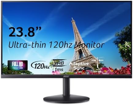 SB243Y G0bi 23.8" IPS Full HD (1920 x 1080) Ultra-Thin Zero-Frame Gaming Office Monitor | Adaptive-Sync Support (FreeSync Compatible) | Up to 120Hz Refresh | 1ms (VRB) | Tilt | HDMI & VGA Ports