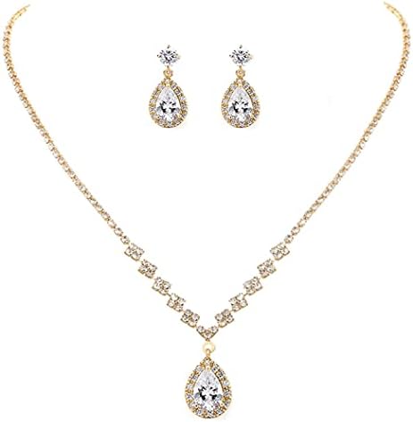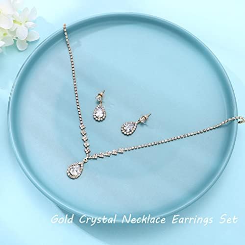 Unicra Bride Crystal Necklace Earrings Set Bridal Wedding Jewelry Sets Rhinestone Choker Necklace Prom Costume Jewelry Set for Women and Brides