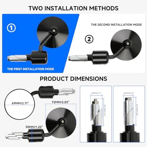 Sponsored Ad - Universal Black Motorcycle Aluminum Rearview Side Mirrors 7/8" Bar End For Cafe Racer Bobber Cruiser Scooter