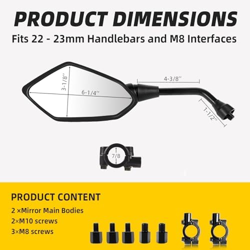 Sponsored Ad - ATV Mirrors, 8MM 10MM Universal Motorcycle Side Mirrors with 7/8" Handlebar Mount Clamp Compatible with Motorcycle Scooter Moped Polaris Sportsman Dirt Bike and More (Black)
