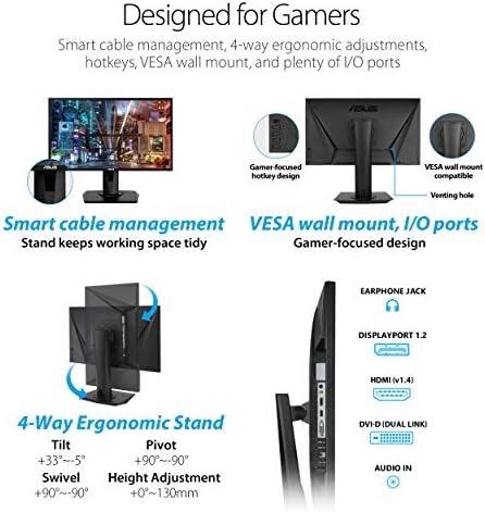 VG248QG 24" G-SYNC Gaming Monitor 165Hz 1080p 0.5ms Eye Care with DP HDMI DVI,Black