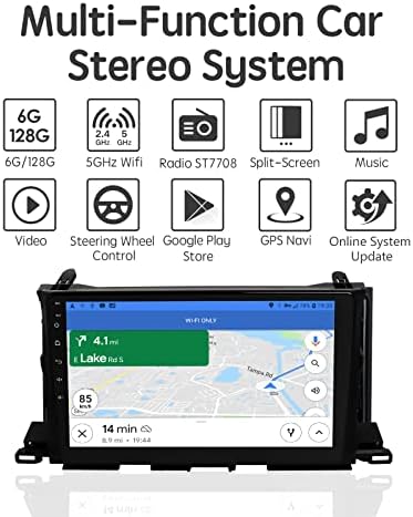 Android 13.0 6G 128G Car Stereo Wireless Apple CarPlay for Toyota Highlander 2014-2019, 10.2" HD Touch Screen Radio Bluetooth GPS Navigation, 2.4GHz & 5GHz WiFi, SWC, DSP 48-EQ AM FM Radio