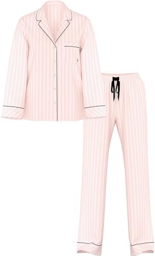 Flannel Pajama Set, Long Sleeve Button Down Shirt & Pants, Sleepwear for Women (XS-XXL)